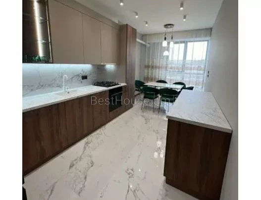 For rent is a modern 3-room apartment in a newly built building on Griboyedov Street, 150 square meters, 2 bathrooms. The apartment is equipped with the necessary furniture and appliances.