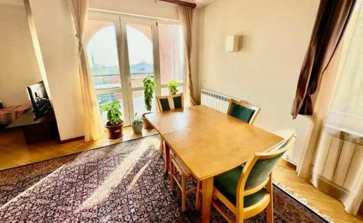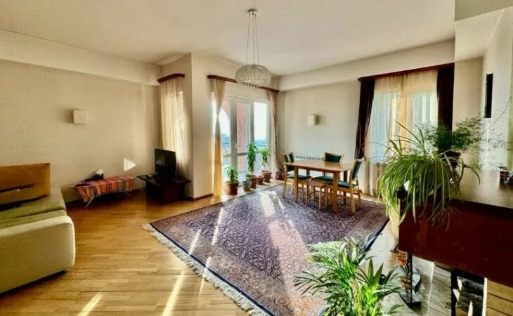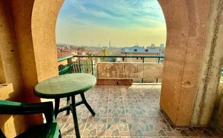 Apartment in the Elite district of Huwaisai Ray (Arabkir) 87 sq m, on the 5th floor of a newly built multi-apartment building made of tuff, in very good condition, bright, has 1 bedroom, 2 bathrooms, 1 main balcony with a view of Mount Ararat and 1 small balcony near the kitchen.