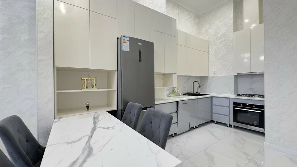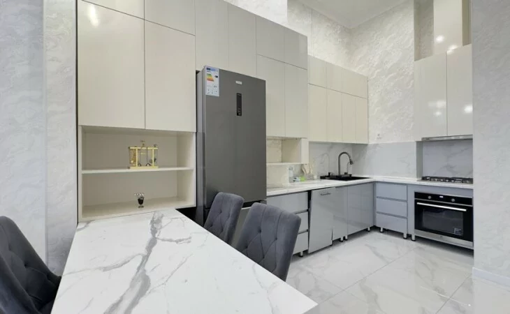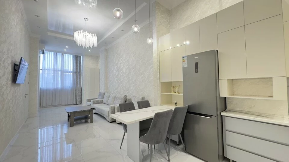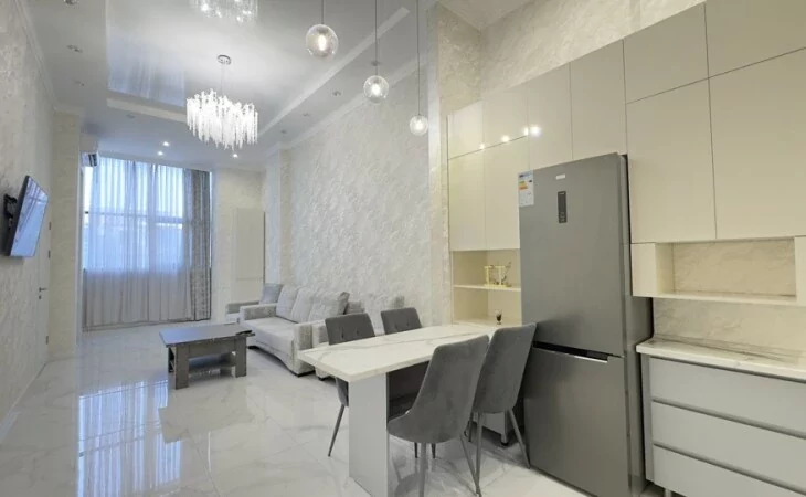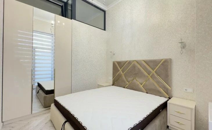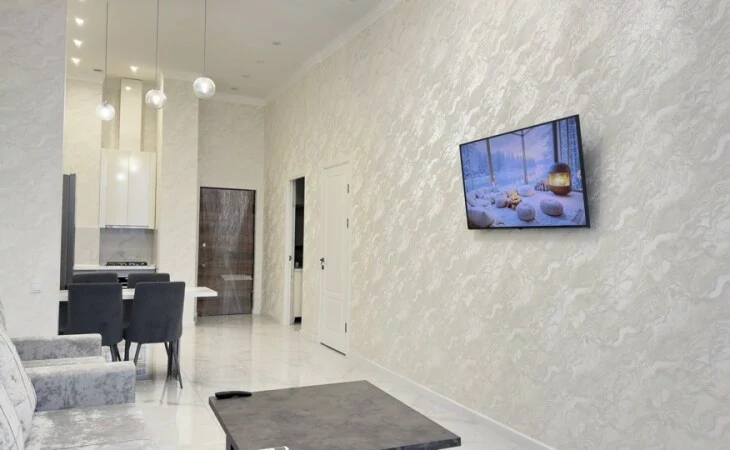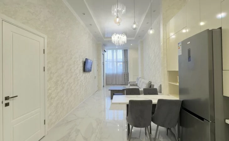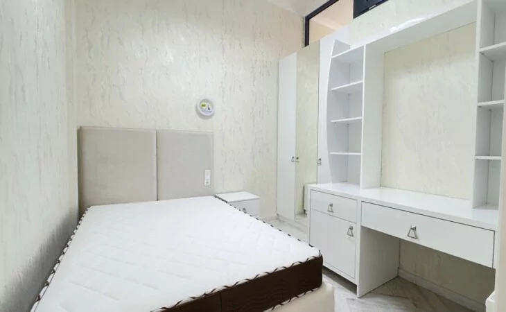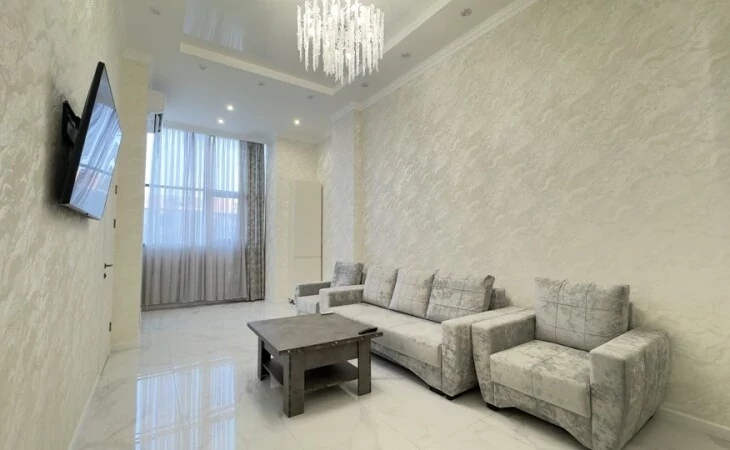 A 3-room apartment with an area of 72 square meters is for rent on Komitas Avenue, located on the 3rd floor of an 18-story new building. The apartment has been completely renovated in a modern style. An iron entrance door and euro windows have been installed. The heating is individual, via a gas boiler. The interior work was carried out with high-quality construction materials. The living room and kitchen are studio-style, furnished, equipped with furniture and appliances. The bathroom is tiled with ceramic tiles, equipped with high-quality plumbing.