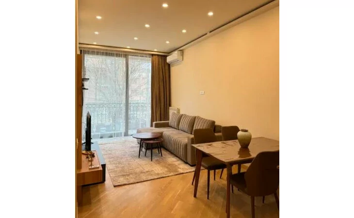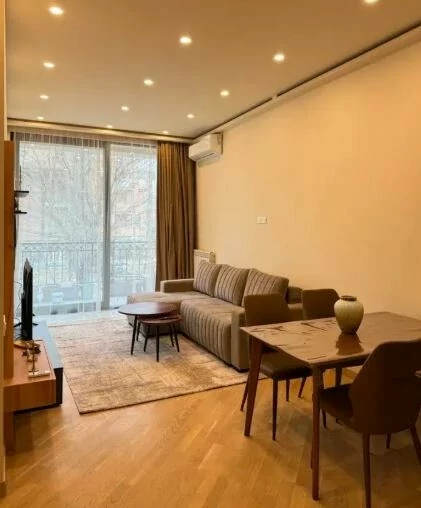 A bright, completely renovated 60 sq m apartment with a spacious and comfortable balcony is offered for rent in a modern 6-storey high-class building.