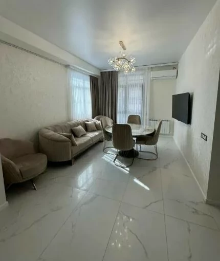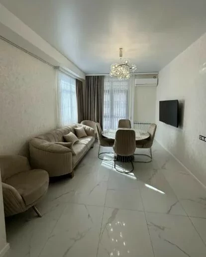 For rent a spacious apartment (2 bedrooms and a kitchen, living room) in the city center. Newly renovated. Air conditioning. There is everything for a comfortable life. New residential complex. There is a concierge, a gym in the house. Within walking distance of the Rio shopping center. 700 meters from the Cascade