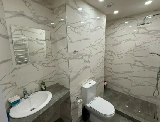 The floor is heated. It is located in a quiet place away from the noise of street traffic. There is a supermarket, school, kindergarten, sports complex nearby. The yard is a cultivated flower garden.