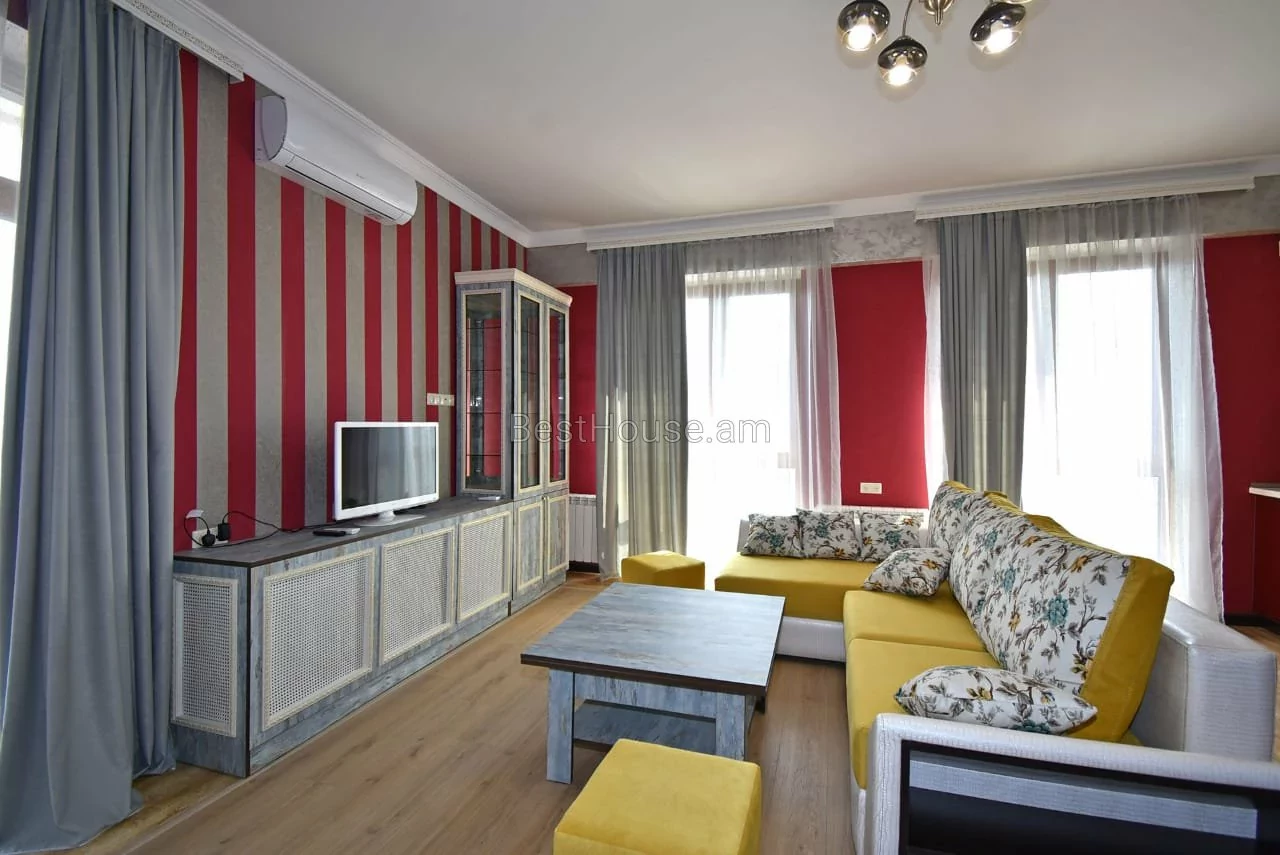 Two - bedroom, two - bathroom spacious apartment on Mashtots avenue near the Opera is currently for rent. It covers an area of 105 sq.m. and occupies the 10th floor of a new residential 14 storey building. The apartment is newly renovated. Local heating system is installed. All the rooms are furnished and equipped with the necessary appliances. Tableware and bed linen are provided. From the open balcony a nice view can be observed. Cable TV and Internet are installed. Numerous shops, cafes, restaurants, as well as bank branches are located just nearby.