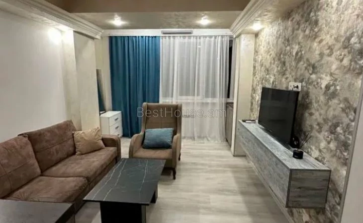 A 2-room, 56 square meter, euro-renovated apartment is for rent on Khorenatsi street. The apartment has an outdoor parking space and is equipped with the necessary property and equipment. There is a playground super market nearby.