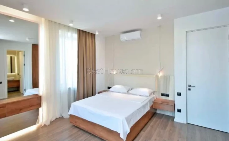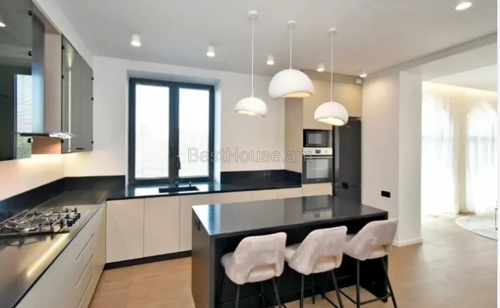 A beautiful 3-room designer-style renovated apartment with an area of 92 square meters is for rent on Atumanyan street. The apartment has 2 bathrooms. The apartment has several balconies with beautiful views of the cascade, Mount Ararat.