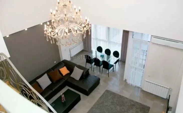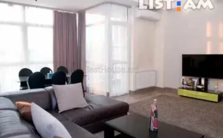 A 4-room apartment, renovated in designer style, with an area of 157 square meters, is for rent on Rostomi Street. The apartment has a garage, several balconies. Equipped with necessary property and equipment.