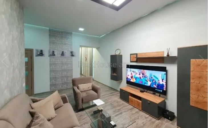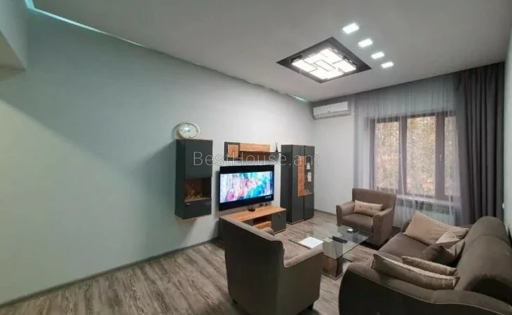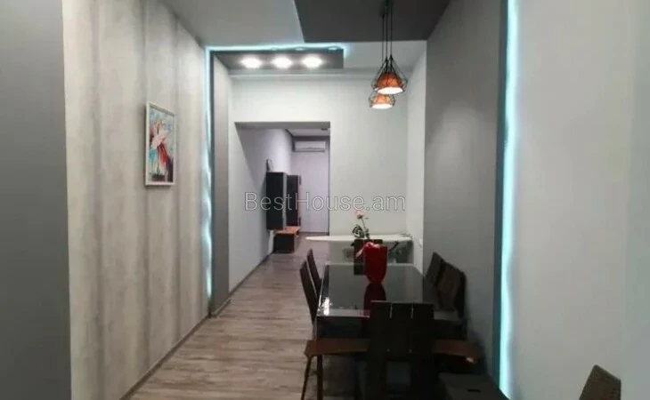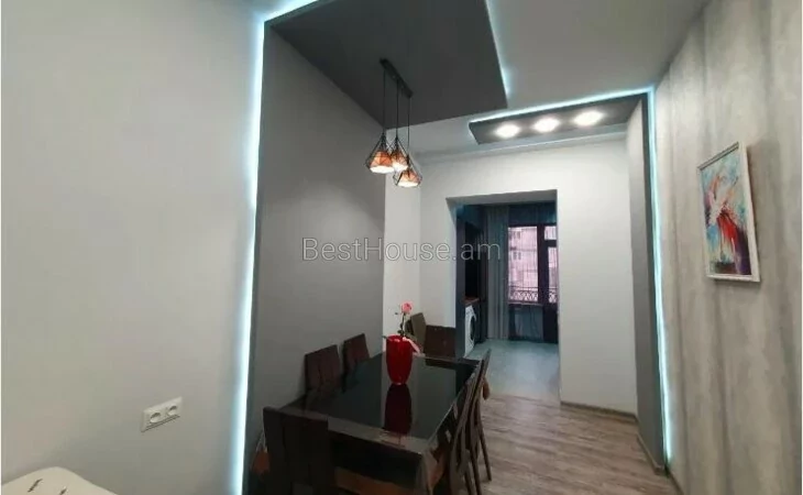 In Esli Mashtots Avenue, a 3-room designer-style renovated 80 square meter apartment is for rent. There is an outdoor parking space, several balconies. Equipped with necessary property and equipment.