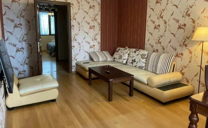 The apartment is renovated and equipped with necessary property and equipment. The kitchen and bathroom are tiled. Heating is carried out by a gas boiler (Baxi). The apartment has 2 bedrooms, 1 office, 1 living room and a large kitchen.