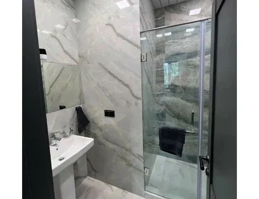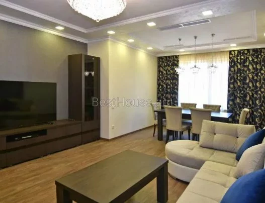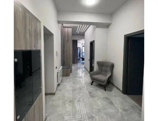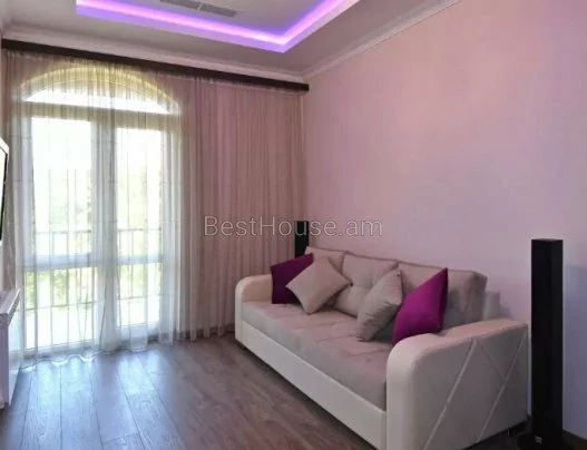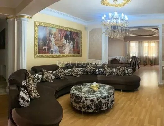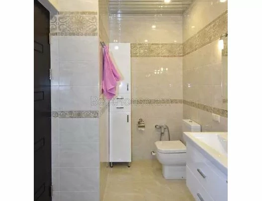 A 5-room 250 square meter apartment on the 4th floor of an 8-story building on Ekmalyan Street is for long-term rent or daily rent. The apartment is completely renovated, air conditioners, euro windows are installed, the floor is covered with parquet and heated tiles. 2 bathrooms with bathtubs are tiled, one of them is adjacent to the bedroom. There is a separate bathroom with a sink. The kitchen and rooms are furnished, provided with high-quality household appliances and all accessories, there is an intercom. The building has an elevator and a playground. Malibu Park is nearby.