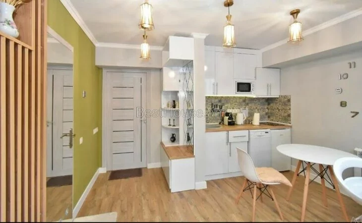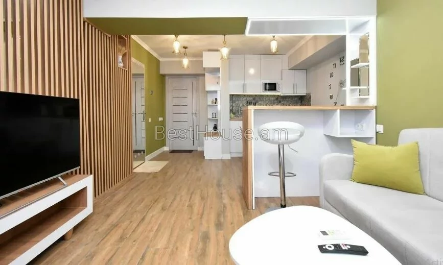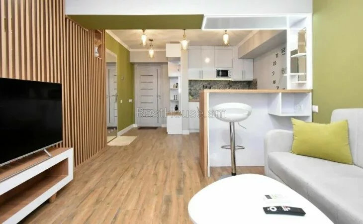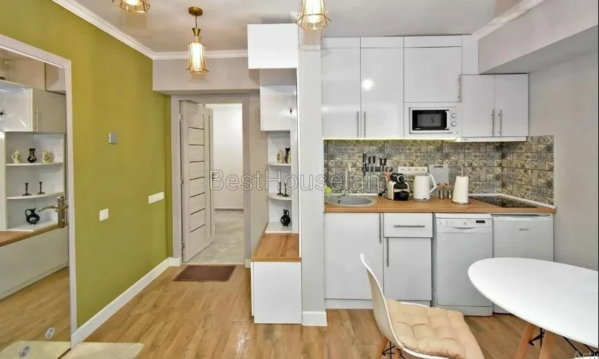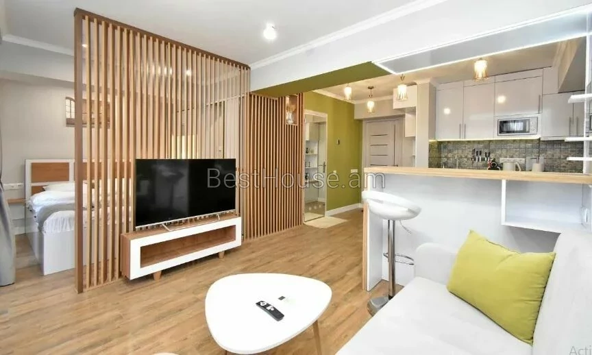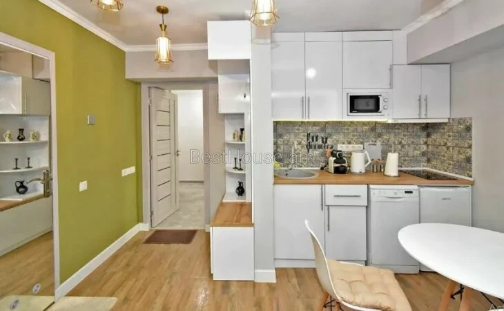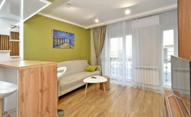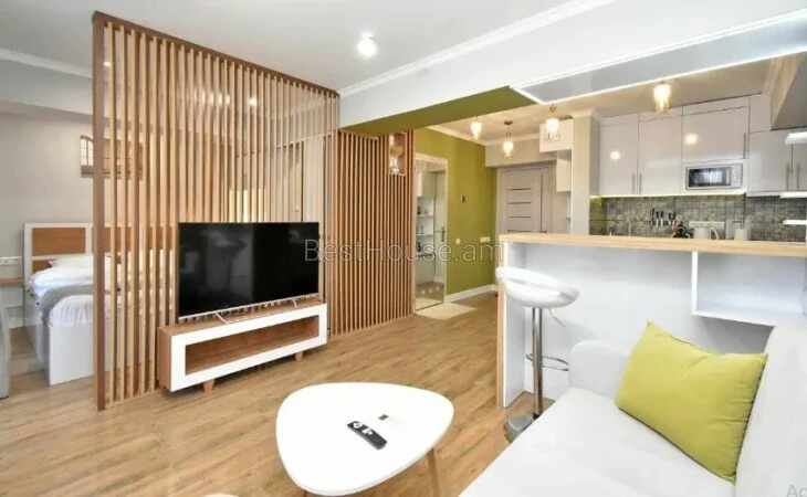 A 1-room renovated apartment in a beautiful designer style is for rent on Antara Street. The apartment is equipped with the necessary property and equipment.