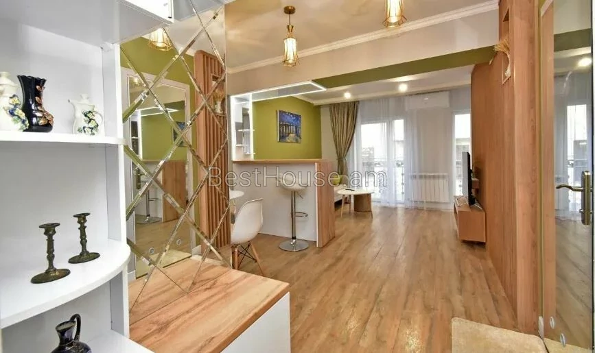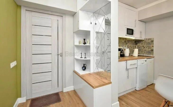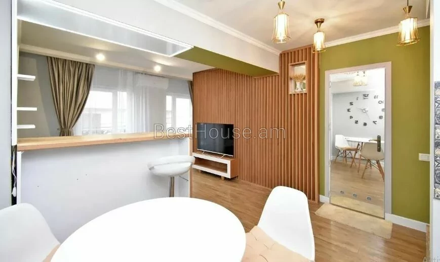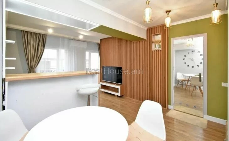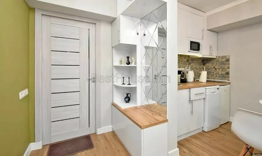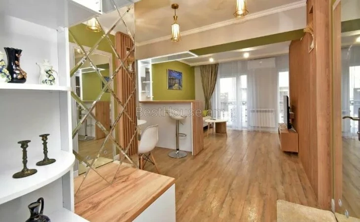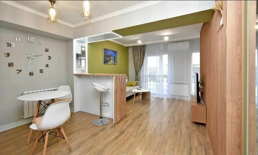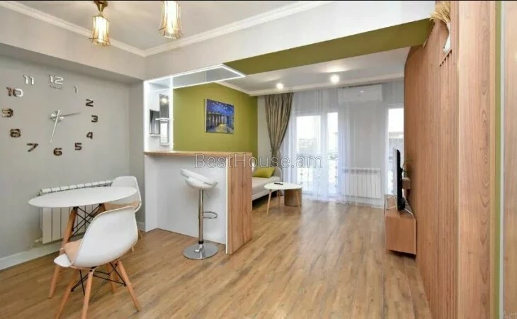 A 1-room renovated apartment in a beautiful designer style is for rent on Antara Street. The apartment is equipped with the necessary property and equipment.