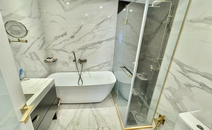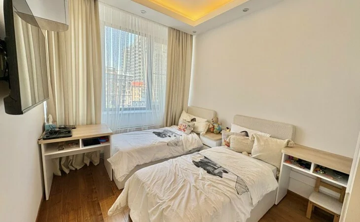 A spacious 4-room apartment, renovated with designer solutions, with all amenities, is for rent. With beautiful stained glass views to Malibu Park. All public infrastructures are nearby.