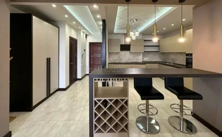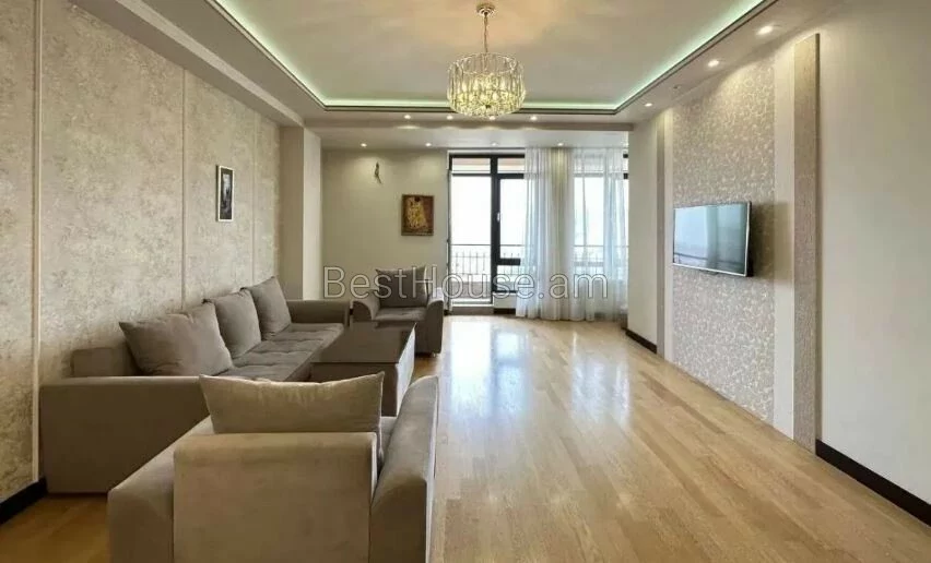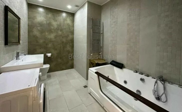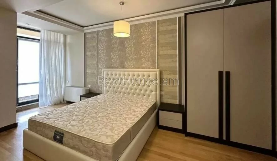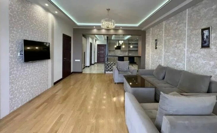 A luxury apartment is for rent in a newly built building at Sayat-Nova-Abovyan intersection. The area of the apartment is 95 square meters, furnished with luxurious designer solutions. It has a unique balcony and view. The apartment consists of a living room, a room, two bathrooms, one of which has a jacuzzi, and a balcony without such.