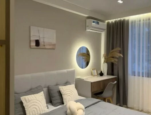 ...A comfortable 2-room apartment for rent in the Small Center, on Buzand street, a newly built elite building. The apartment is equipped with all utilities, furniture and appliances. It has an open balcony.
