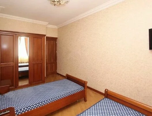 For rent is a 4-room apartment with an area of 205 sq. M., located on the 7th floor of a 12-story new building. The apartment has been fully renovated. An iron door, euro windows, and air conditioning have been installed. It is heated by a heating system. It is provided with round-the-clock water and gas supply. The bathroom is tiled and equipped with plumbing. The apartment is equipped with furniture and appliances.