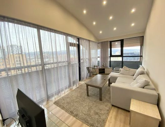 For rent is a 3-room apartment with an area of 90 sq. M., located on the 8th floor of a 11-story new building. The apartment has been fully renovated. An iron door, euro windows, and air conditioning have been installed. It is heated by a heating system. It is provided with round-the-clock water and gas supply. The bathroom is tiled and equipped with plumbing. There is an open balcony. The apartment is equipped with furniture and appliances.