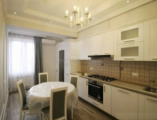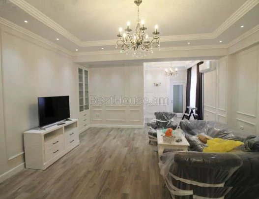 A 4-room apartment is for rent at Paronyan Street. It has 3 bedrooms, 3 bathrooms, 2 balconies. A garage is also provided. The building is monitored by security guards.
