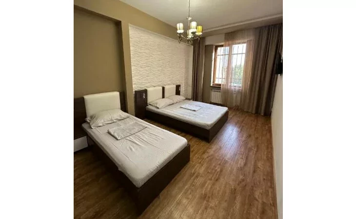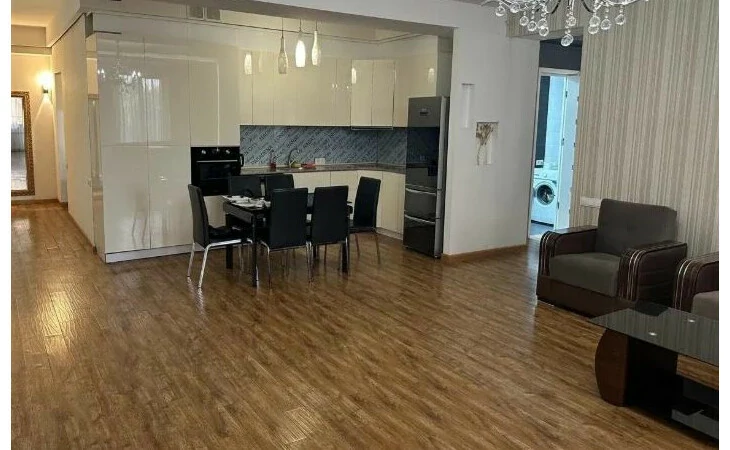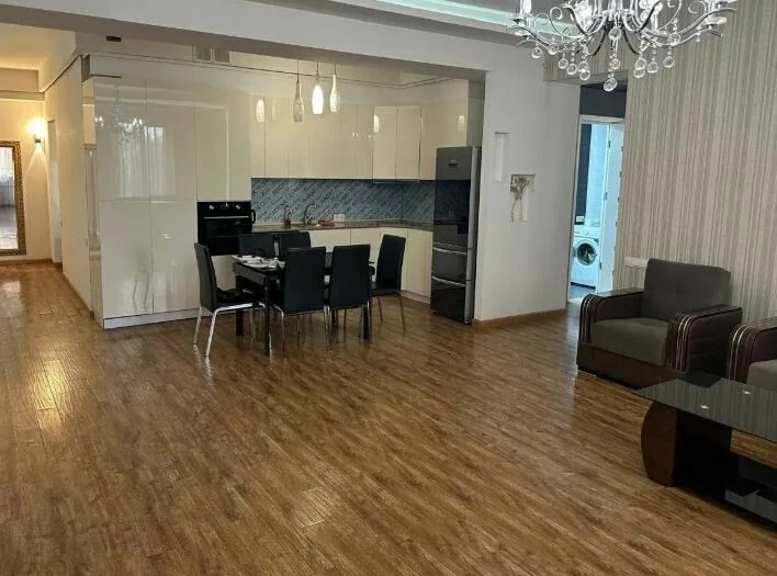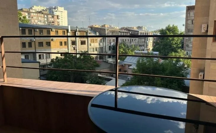 At the intersection of M. Mashtots and Tumanyan streets, next to the Opera, a fully renovated 3-room apartment with an area of 112.6 square meters is for rent. The apartment is located on the 4th floor of a newly built 13-story building.