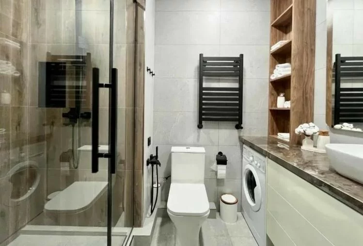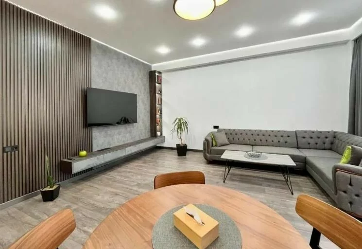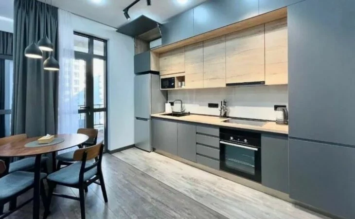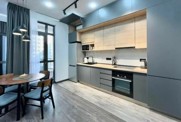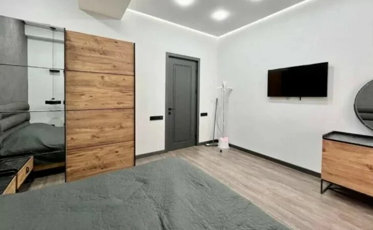 The total area of the apartment is 70 sq.m., which is renovated in a designer style and furnished with high-quality furniture and appliances.