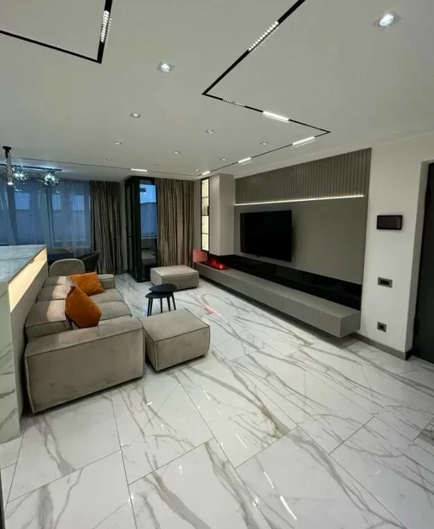 For rent a modern 3-room apartment on Pushkin Street in the center, 102 square meters, the apartment has a beautiful balcony.