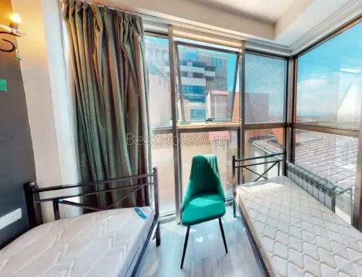 A 3-room apartment is for rent in the center on Argishti Street. The apartment is located on the 14th floor of a 14-story new building. The total area is 89 square meters, there is a studio living room, 2 bedrooms, 1 bathroom, 1 storage room and 2 open balconies.