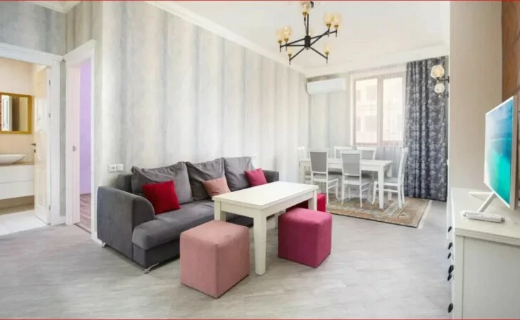 A 3-room, fully renovated apartment is for rent in a newly built building on Amiryan Street, next to Republic Square. All utilities are available.