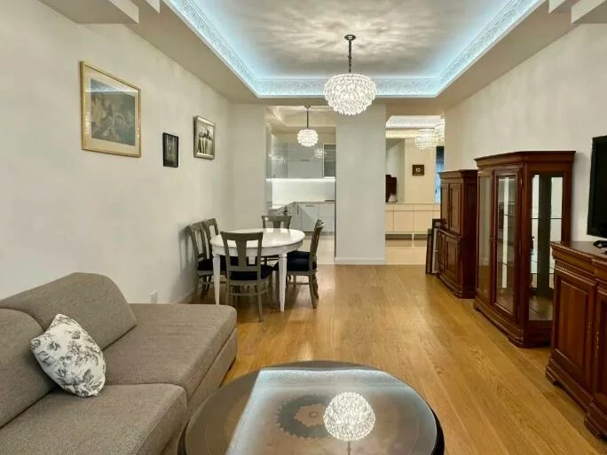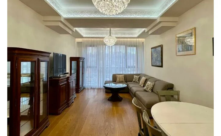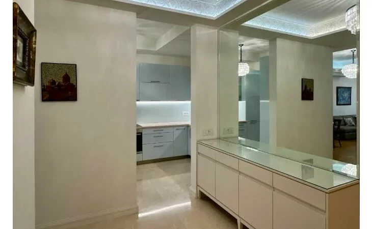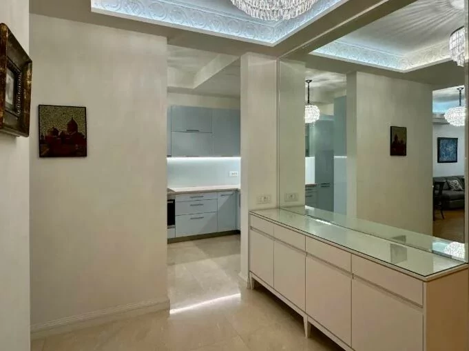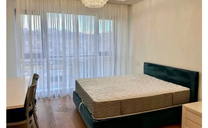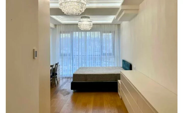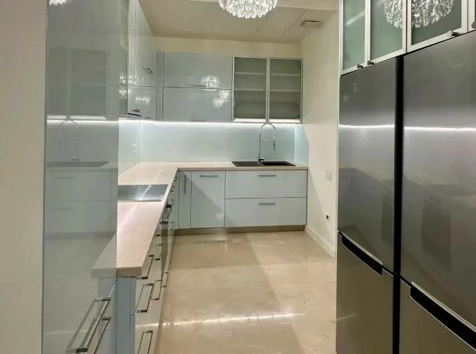 Basic information * Floor: 17/22 * Area: 90 sq m * Bedroom: 1 * Master bathroom: 1 (with bathtub) * Guest bathroom: 1 * Condition: Fully furnished and equipped with household appliances Amenities * 24/7 security * High-speed internet * Cafes and restaurants * 2 spacious elevators * Central heating and cooling * Centralized cold and hot water supply