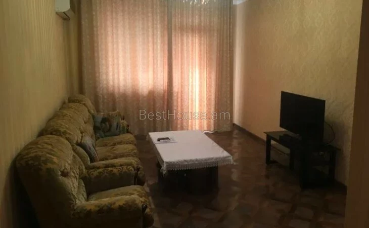 A 2-room euro-renovated bright apartment is for rent on Sasna Tsrer street. The apartment is equipped with necessary property and equipment. There is an open balcony with a beautiful view of the city and Mount Ararat.