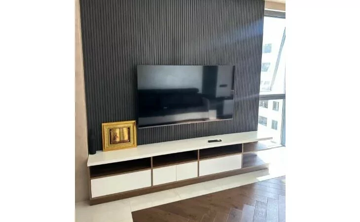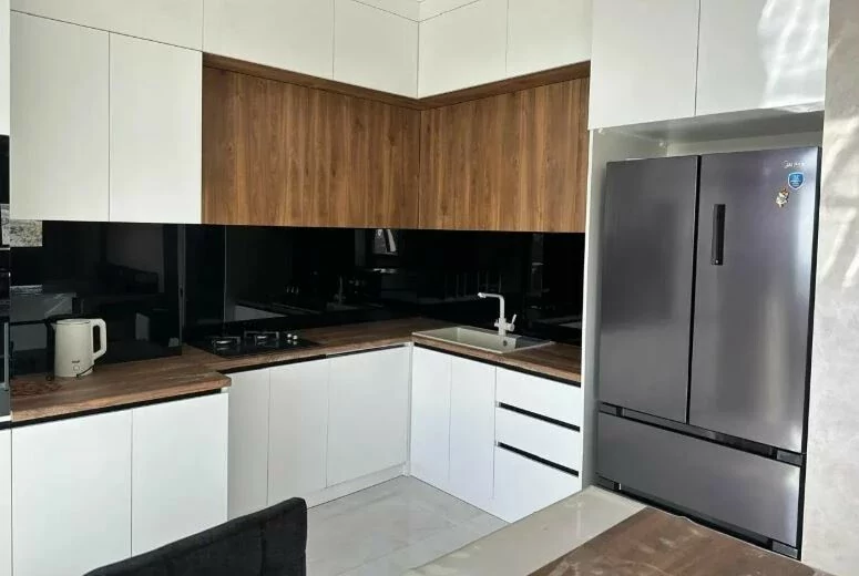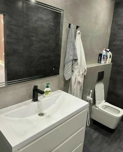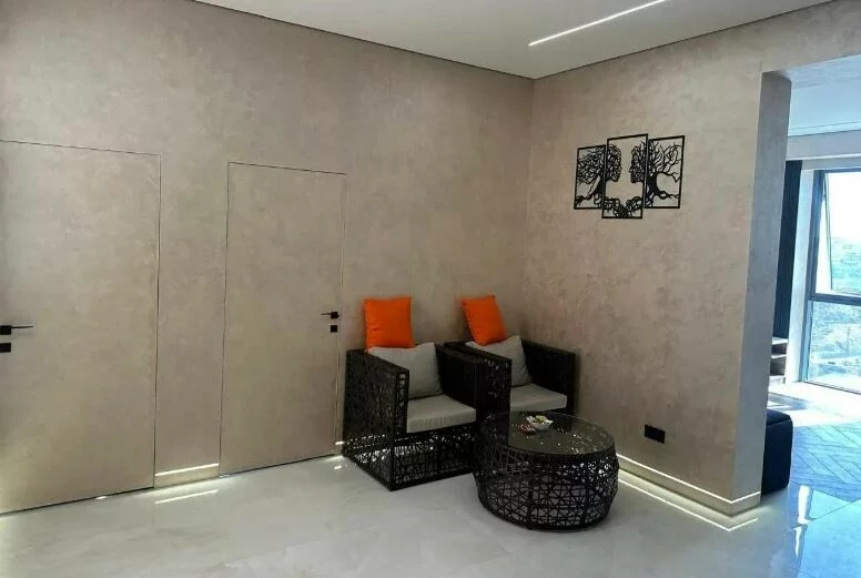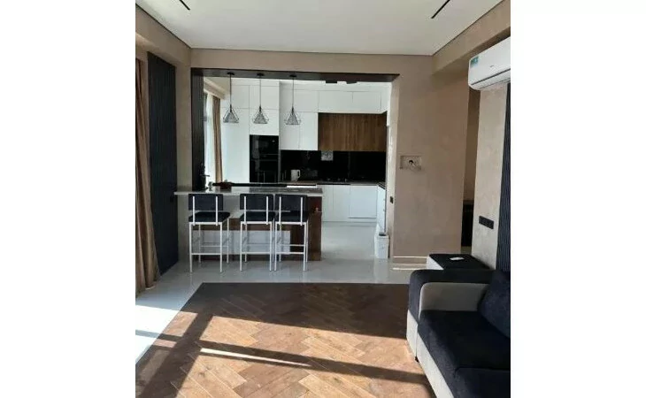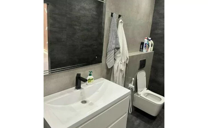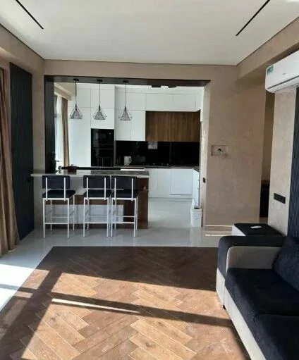 The apartment is completely renovated and is in excellent condition. All materials and furniture are new, with a modern design. New plumbing, electricity, doors and windows have been installed.