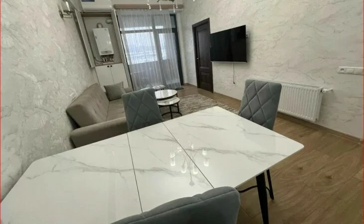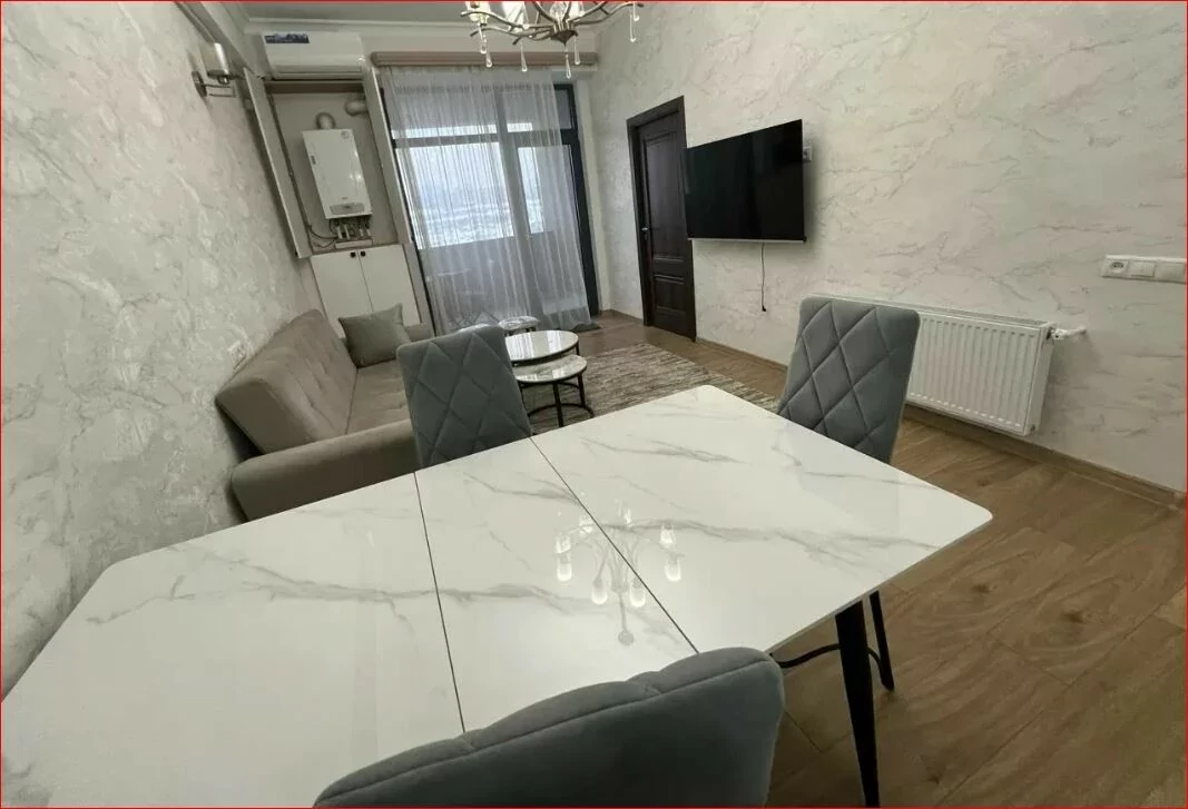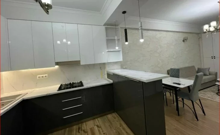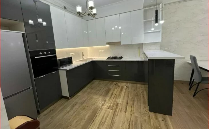 A 3-room, fully renovated apartment is for rent in a newly built building on Mikoyan Street. All utilities are available.