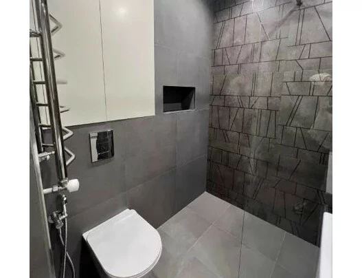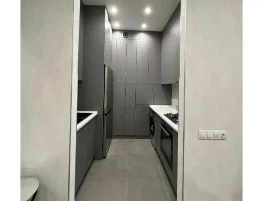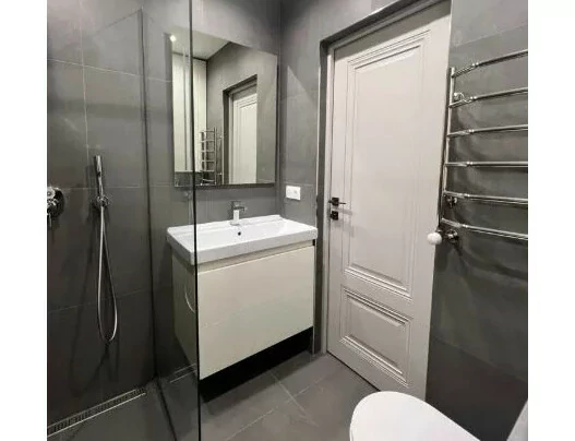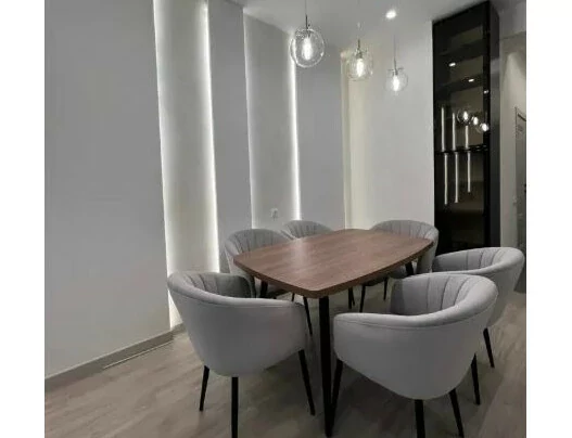 A 2-room apartment, converted into a 3-room apartment, with a total area of 80 square meters, is available for long-term rent. The apartment is located in a closed and secure area with video surveillance. The complex is provided with 24-hour security and has a well-maintained playground.