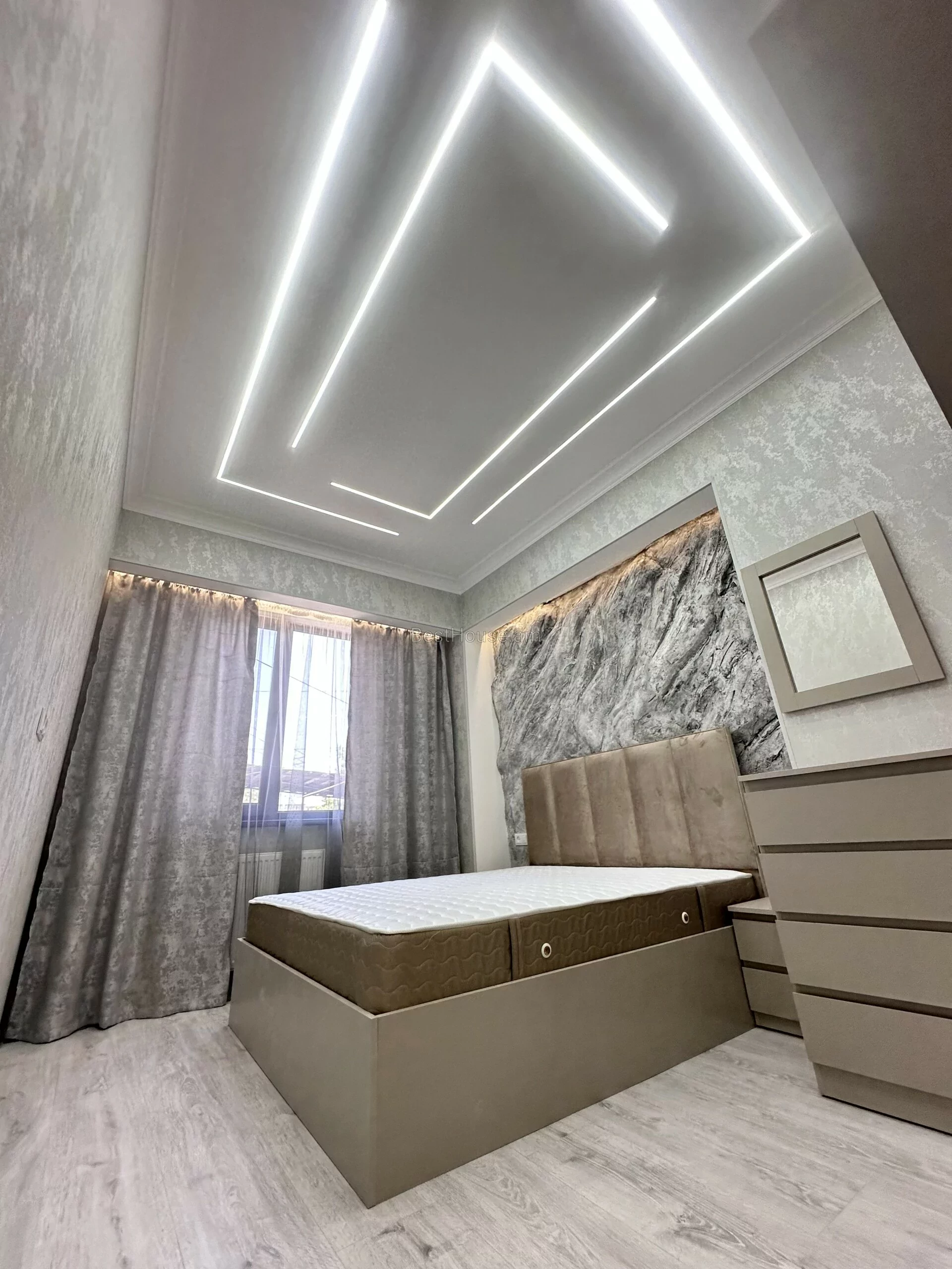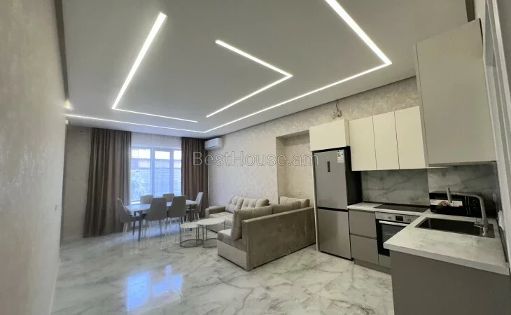 3-room designer-style renovated uninhabited apartment for rent on Artsakh Avenue. The apartment has furniture and appliances, heating system, air conditioner.