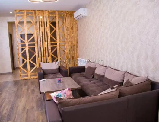 A 3-room, fully renovated apartment is for rent on Lvovyan Street, fully furnished and equipped with appliances.