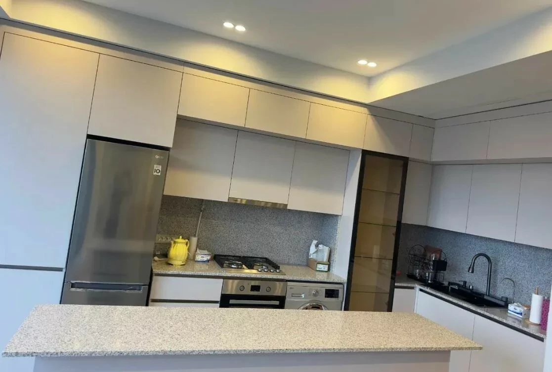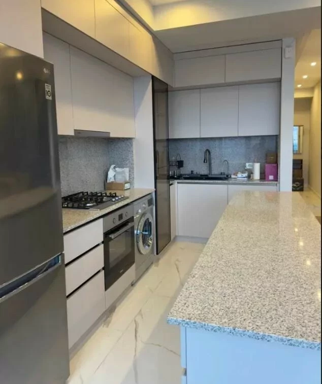 The apartment is fully renovated, very sparsely populated, with all furniture and appliances.