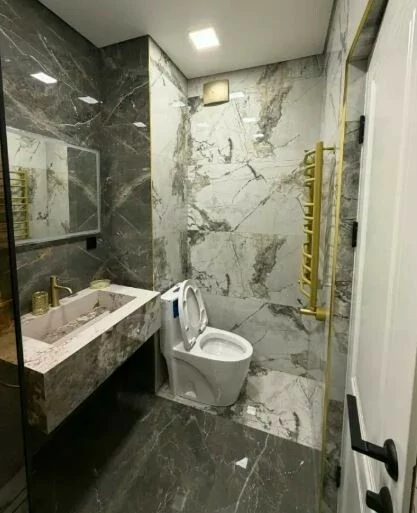 An UNINHABITED apartment is for rent on the second floor of a newly built building. Total area is 78 square meters, 3 rooms, 2 bathrooms, has an open balcony, gas, water, electricity, TV, air conditioners in each room separately, dishwasher, dryer...