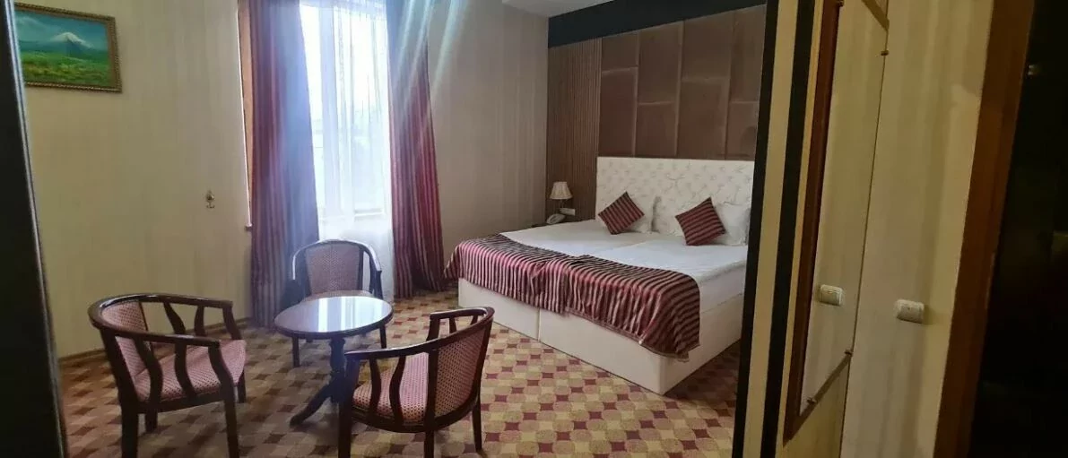 A multifunctional hotel-restaurant building is for rent in the Silikyan district, with a total area of 8300 square meters, has 82 rooms, 3 restaurants, a bar, kitchens, a beautiful courtyard area, an outdoor swimming pool, 2 saunas, a fitness center, commercial areas, a laundry room, a three-phase electricity grid, an 80 kW motor.