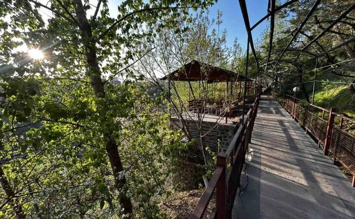 The complex has a beautiful garden on the slope of the gorge and an outdoor summer pool.