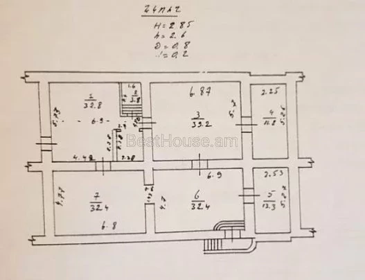 The space has a large hall, a private room, a small kitchen, a bathroom. Total area 45 sq.m., ceiling height 2.7 m.