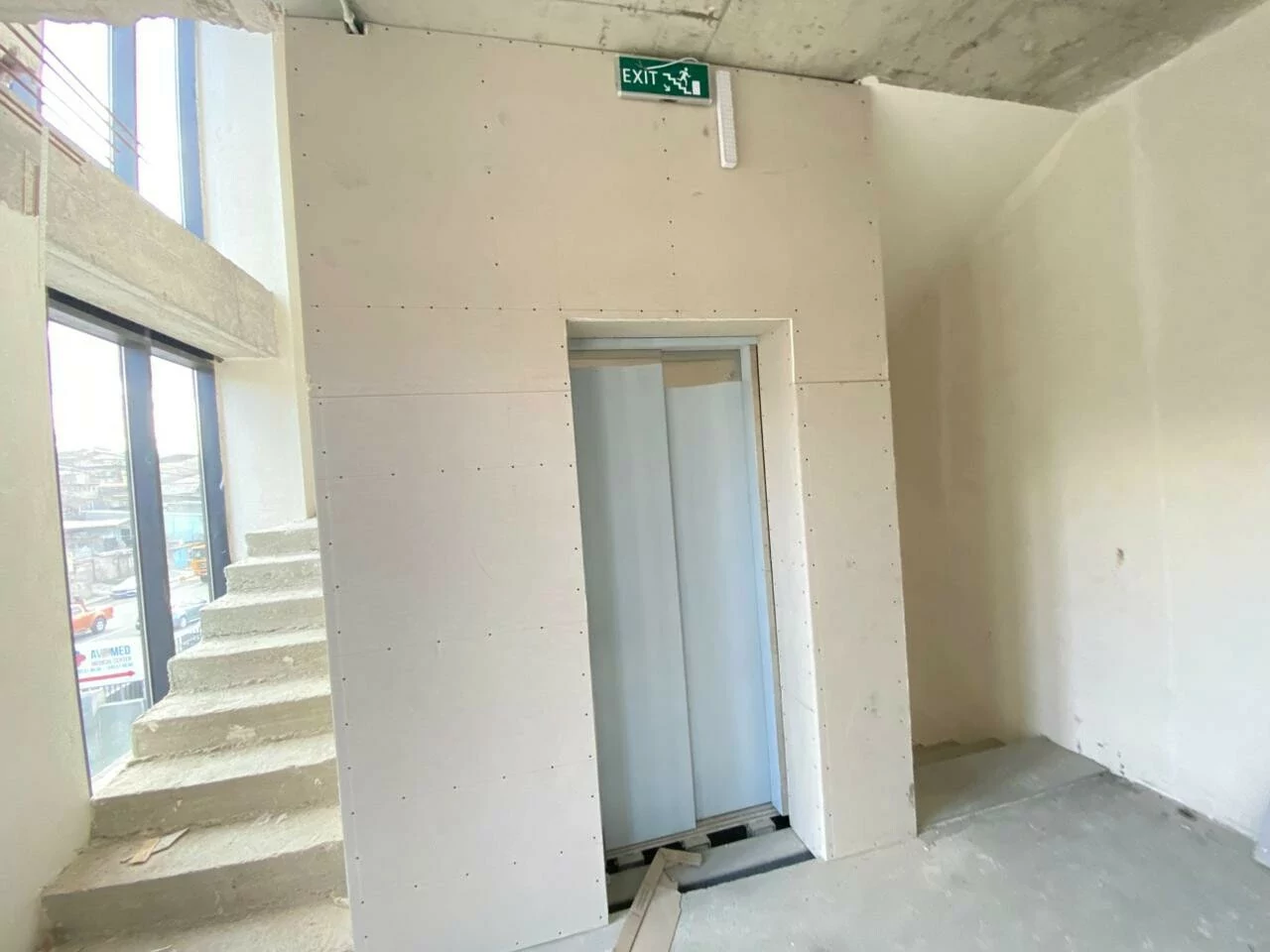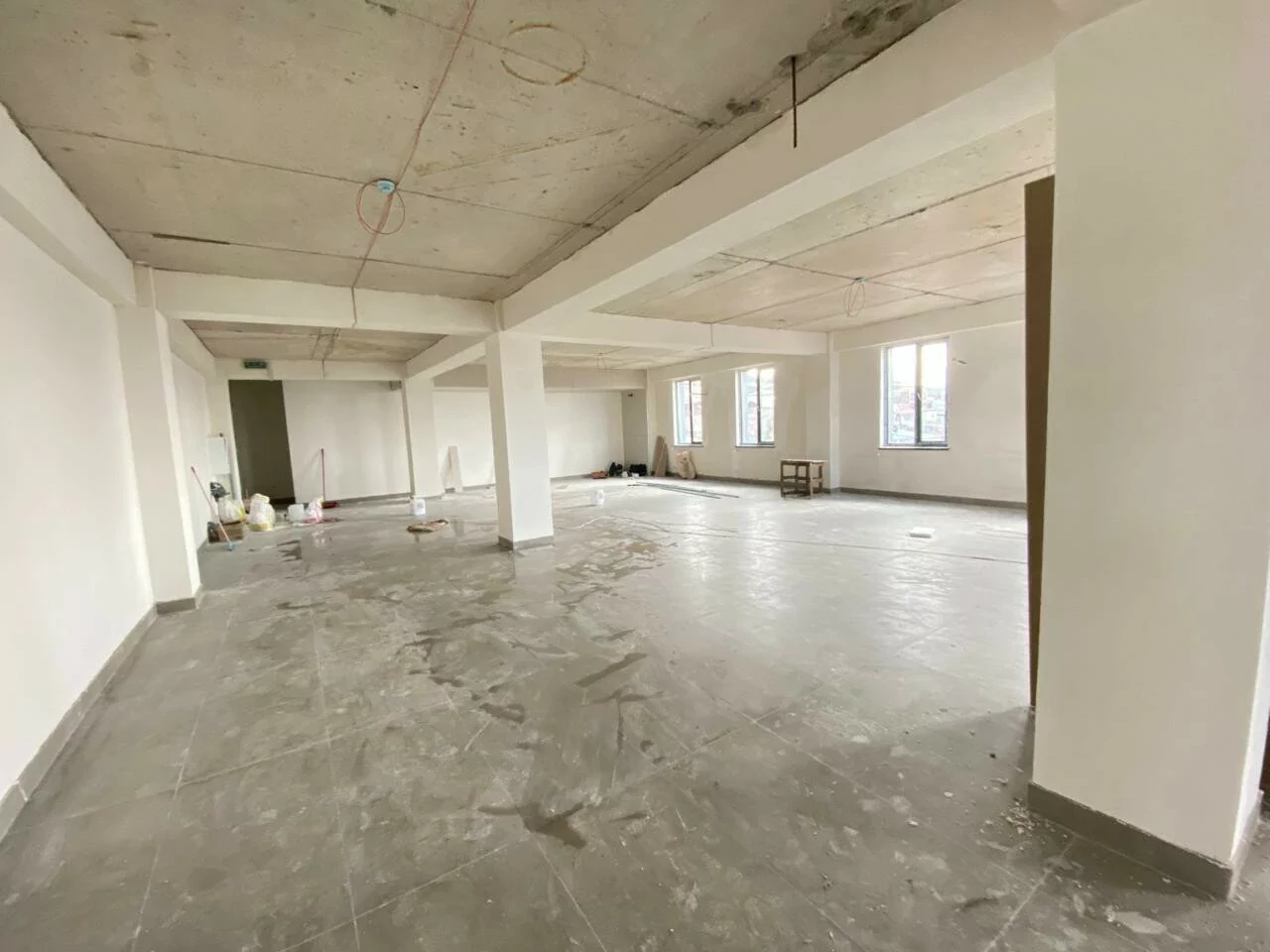 A four-story building is for rent on Tbilisi Highway. Each floor has an area of 250 square meters, a bathroom, a spacious hall and an elevator. All utilities are available.