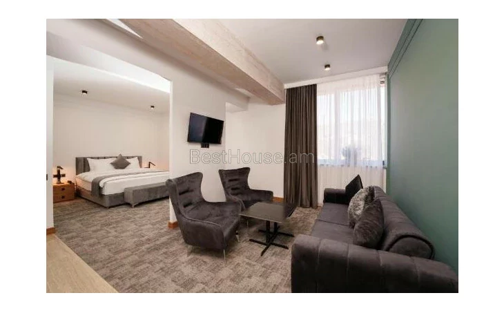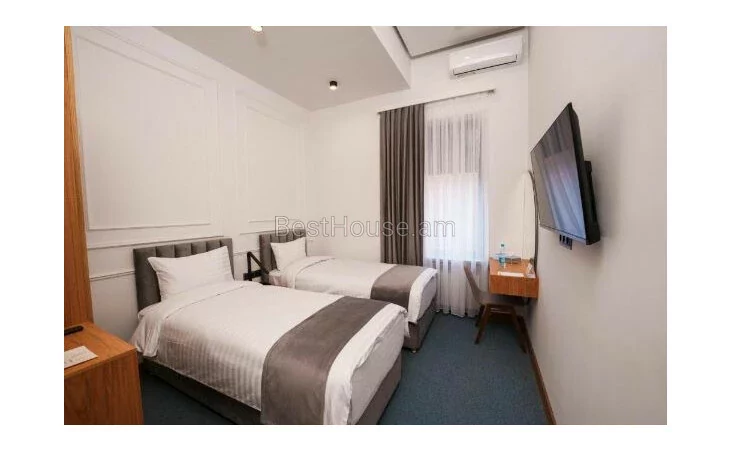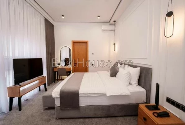 A very luxurious hotel for rent in the center of Yerevan. Total 17 rooms, restaurant, terrace. It is 1 km away from Republic Square. The windows offer a view of the city. The Armenian Academic Theater of Opera and Ballet is about 2.4 km, while Etchmiadzin Cathedral and Yerevan Railway Station are 23 km and 2.3 km respectively.