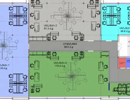 Office space for rent near Rio Mall Price: AMD 9,000 per square meter. Cleaning, security service, central heating and cooling included.