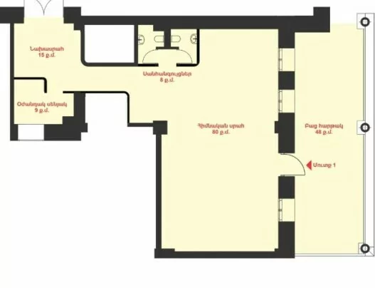 A commercial space is for rent on Sayat Nova Avenue, which can be used for various purposes.