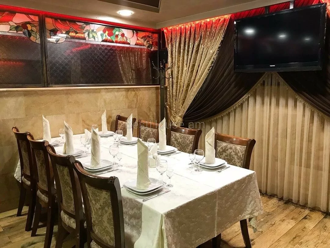 Music hall, completely renovated, furnished, with all amenities, with a large parking lot. It has a general hall with about 125-150 seats, equipped with modern furniture and equipment, lighting effects and a high-end music system, the hall has a stage, a spacious dance floor and a floor for enjoying cocktails and drinks. The kitchen is equipped with high-quality Italian appliances and all kinds of dishes, there is a separate large grill and a high-quality ventilation system. The building is heated and cooled by a Chiller system, the coverage of which exceeds the double size of the area. The building is powered by two-way electricity.