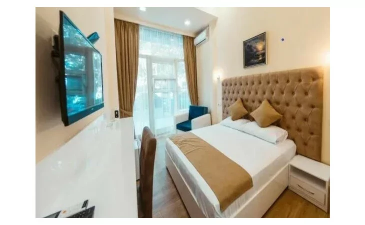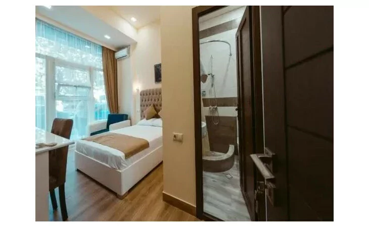 The hotel is located on the 1st floor of a 5-story residential building, the total area of which is 140 square meters. The hotel consists of 5 rooms, designed for 2 + 1 people, fully furnished with stylish and high-quality furniture, renovated in a designer style. There are modern appliances, high-quality dishes and all necessary kitchen accessories, the bathrooms are equipped with all necessary accessories. There is high-speed internet, 100 + TV channels, two power supply lines, as well as electric heaters, constant hot and cold water.