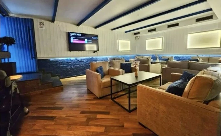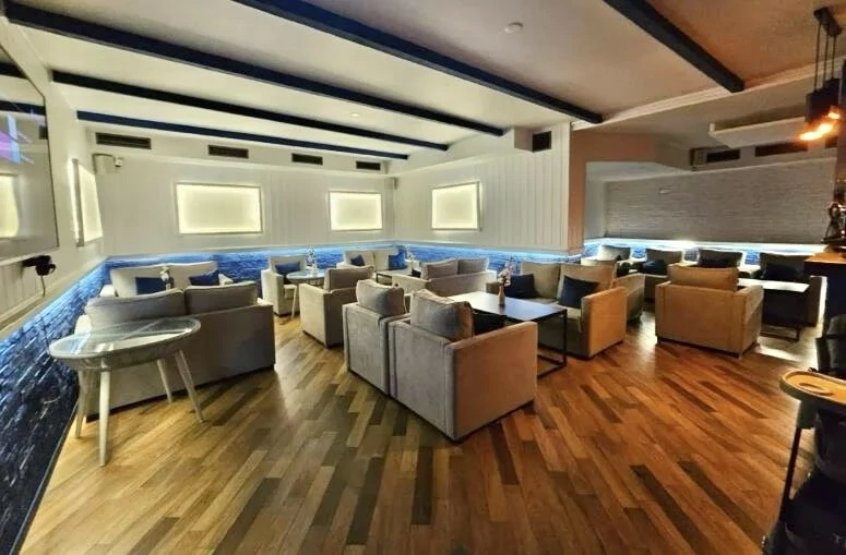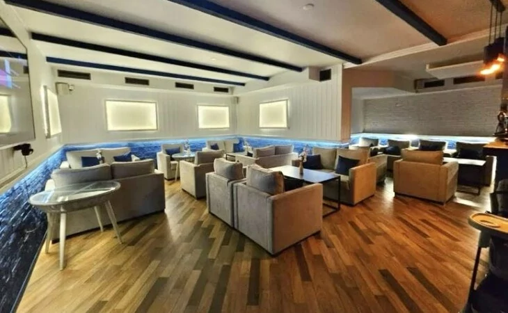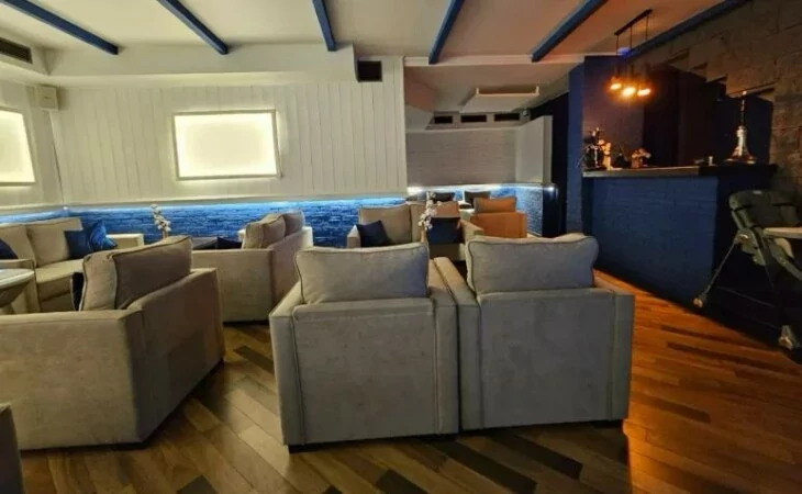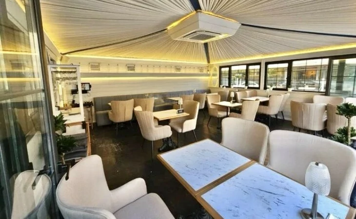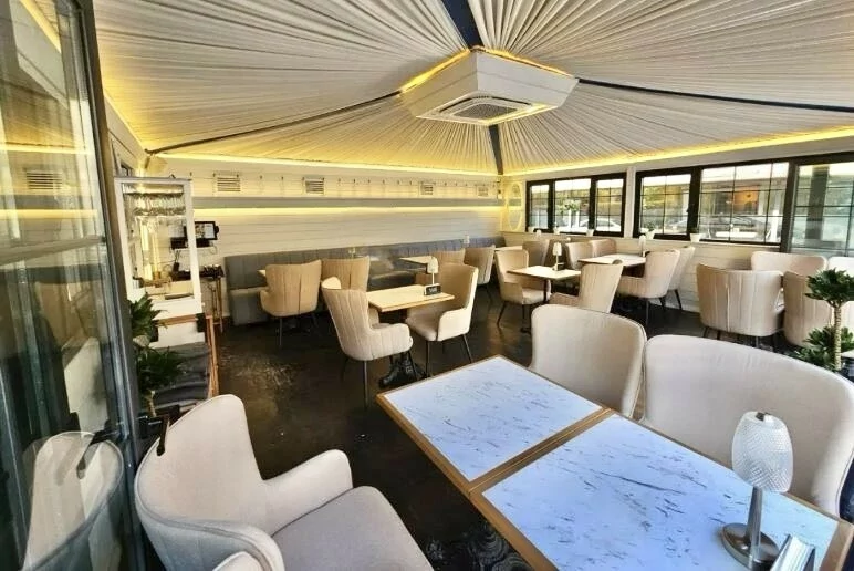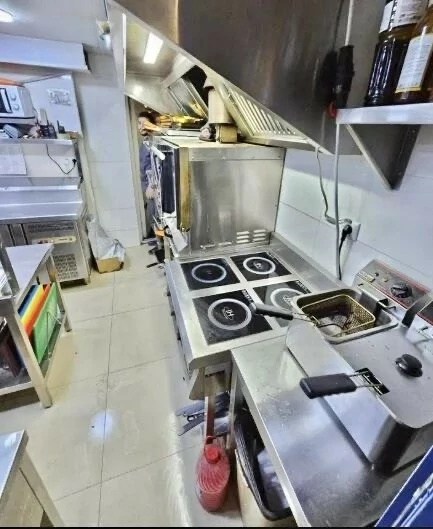 Restaurant space for rent in a small center, in Cascade. The space has a ventilation system, stained glass windows.
