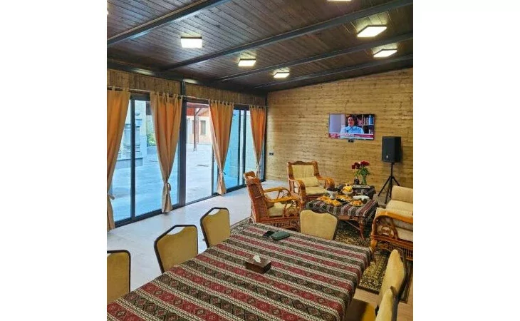 There is a swimming pool with a radius of 6 meters, smart TV;