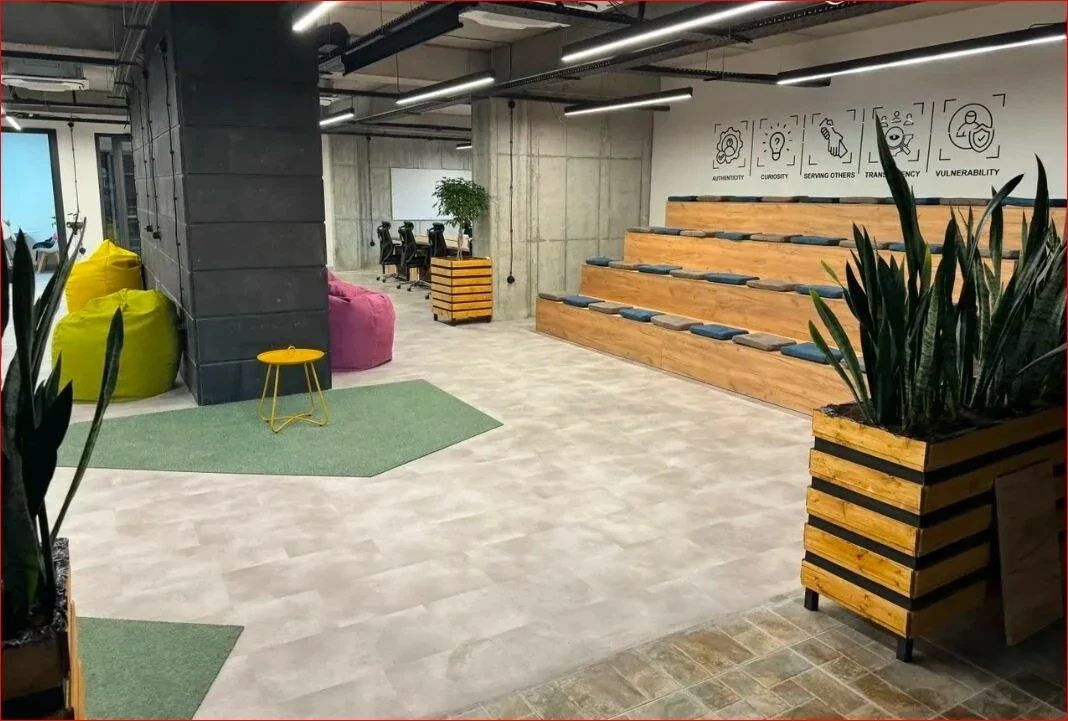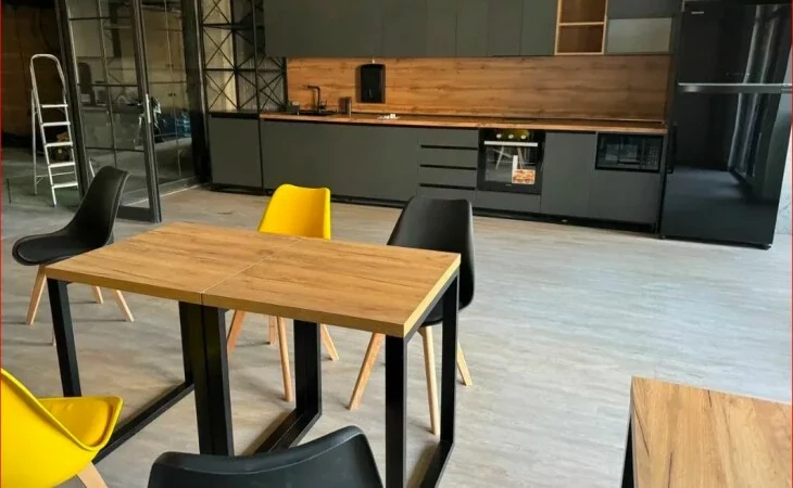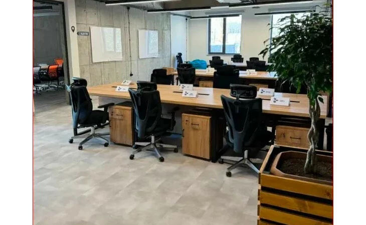 Spacious commercial space for rent on Mikoyan Street. 4 open space work areas Spacious kitchen Relaxation room 5 meeting rooms 5 separate work rooms Spacious amphitheater 7 balconies.