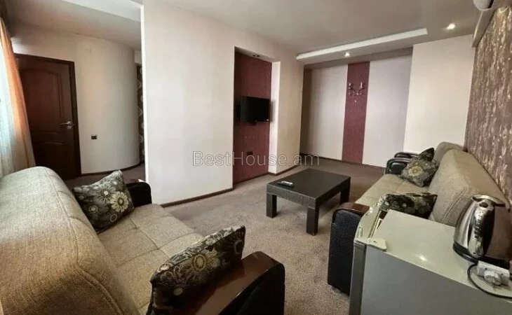 The operating hotel K. is for rent. In Yerevan: Own property, equipped with equipment. There is a beautiful reception, an elevator and a well-maintained yard for a cafe. All rooms have a bathroom, air conditioner, refrigerator, etc. There is 1 garage and an open parking lot. It has been completely renovated. It is located not far from Sasuntsi Davit station.