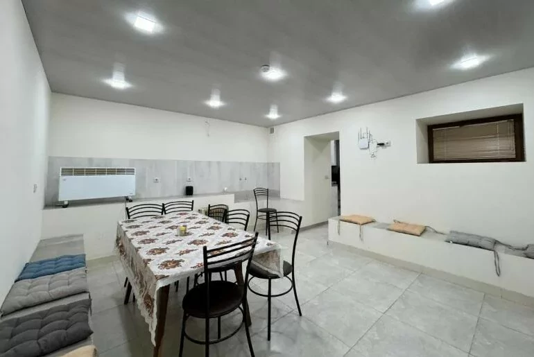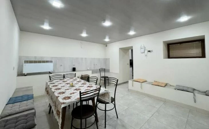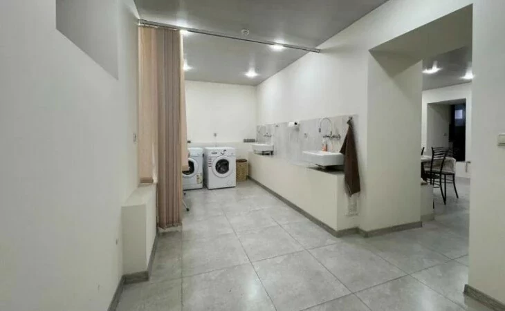 Semi-basement: Laundry room - 8 sq m, dining room - 20 sq m, kitchen - 9 sq m (fully furnished, with dishes), storage room - 8 sq m.