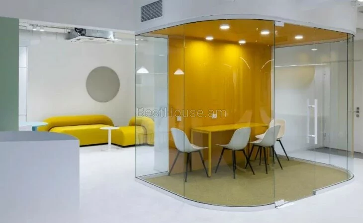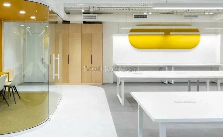Public office space for rent, Yerevan: Zeytun, P. on Sevak Street. The total area of the area is 210 square meters, with two interconnected floors. The latest Daikin ventilation system is installed. Renovated in designer style. The building has a 24/7 security and fire protection system. The area is suitable for offices in the IT sector.